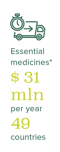 Suffering or dying because of a lack of medicines is inhumane. That’s why we do whatever it takes to create better access to medicine for people around the globe. Our job is done when every person on this planet has access to the right medication, medical supplies at the right place and time.